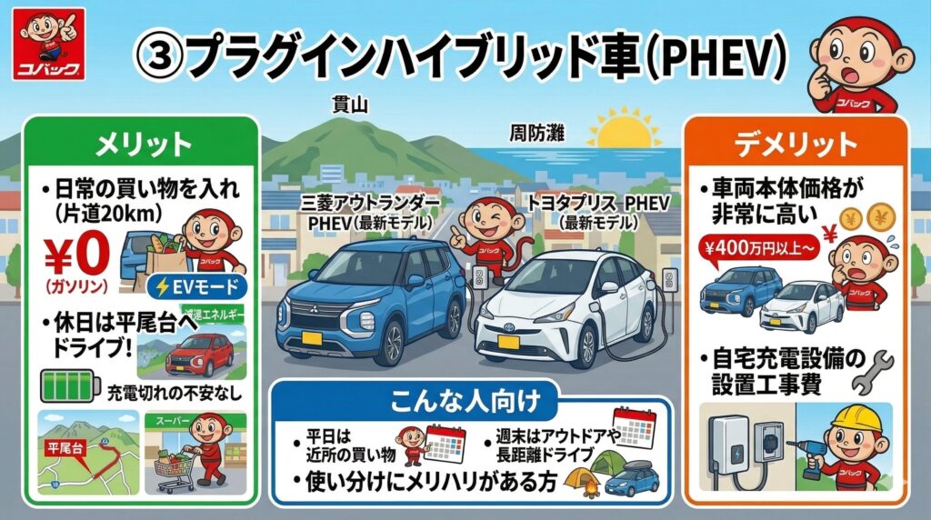 ③ プラグインハイブリッド車(PHEV)