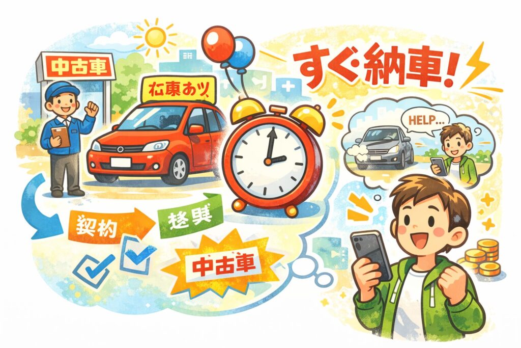 中古車は基本“在庫”なので、書類や準備がスムーズなら