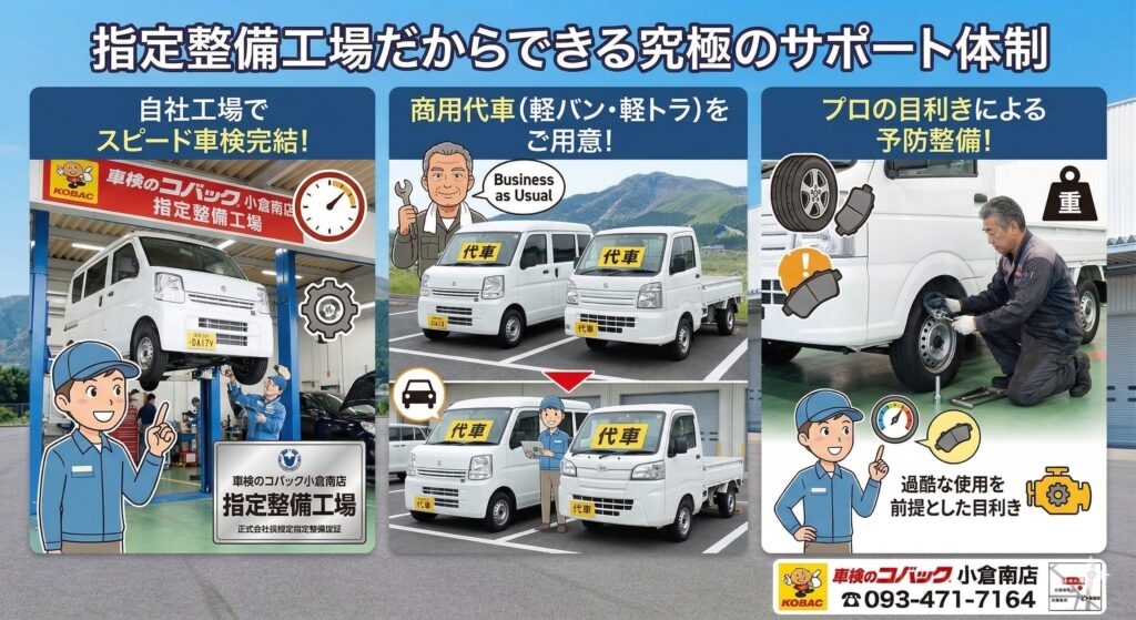 皆様のビジネスの成功を、コバック小倉南店が「車の面」から強力にバックアップいたします!ぜひ一度、お気軽にご相談ください。