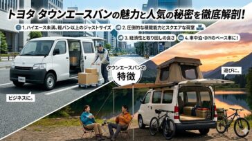 さらに、類似車両との比較を通じて、タウンエースバンの特長や優位性がわかりやすく解説されており、ユーザーの実際のレビューや具体的な使用事例も多数掲載されています。ビジネスでの利用シーンに応じたカスタマイズの提案やメンテナンスのアドバイスも充実しており、信頼できる一台としての情報を提供致します。