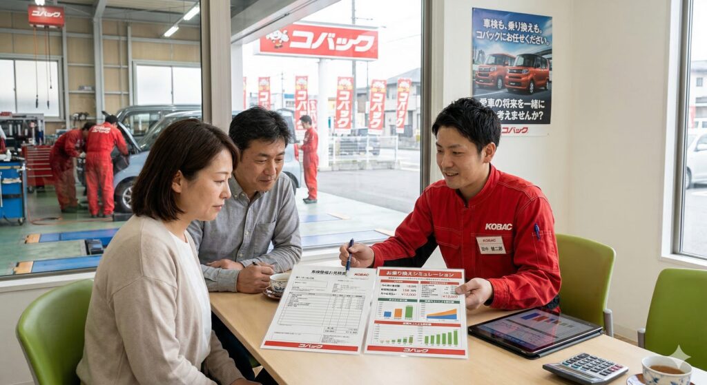 車検のコバック小倉南店では、お客様の現在の愛車の状態をプロの目でしっかりと点検し、正確な車検費用のお見積りをお出しします。 そして同時に、**「もしフラット7で最新の軽自動車(スペーシアやワゴンRなど)に乗り換えた場合、月々定額でいくらになるのか?」**というシミュレーションも無料でご提示させていただきます!
