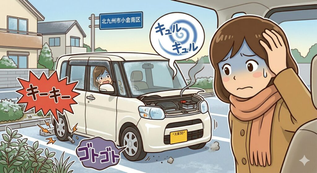 ダントツで多いお悩みが、「朝、出勤しようとしたらエンジンがかからない!」というバッテリー上がりです。特に冬場の冷え込む時期や、夏のエアコンを酷使する時期に多発します。
