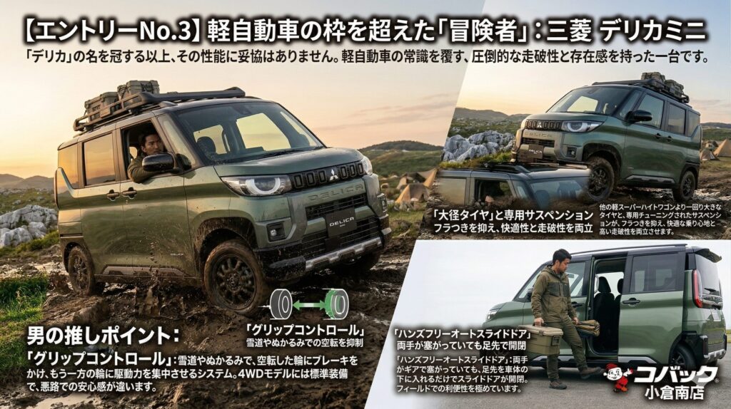 【エントリーNo.3】軽自動車の枠を超えた「冒険者」:三菱 デリカミニ