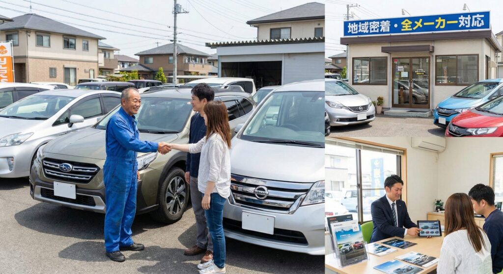 地域密着型で、複数メーカーの車を扱う販売店です。