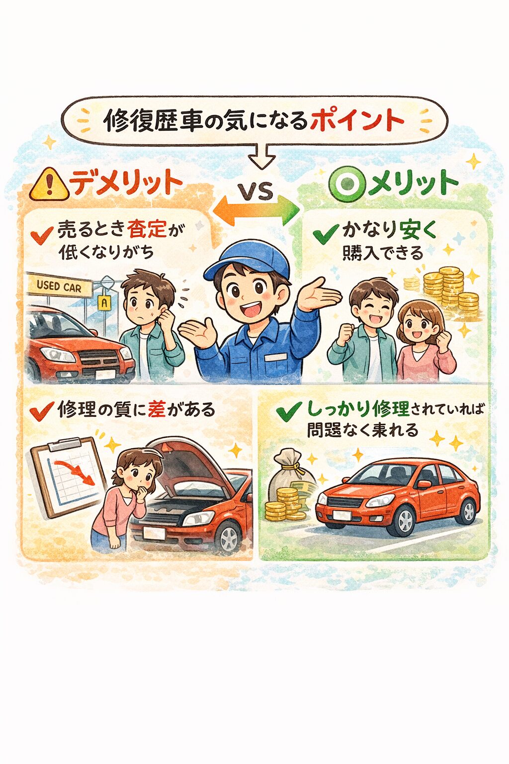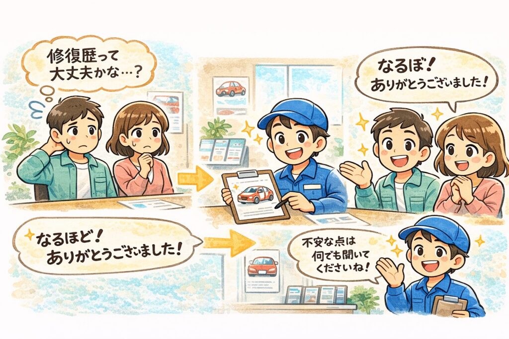 修復歴車は、説明を聞くと安心できるケースが多いです。